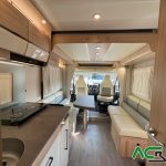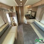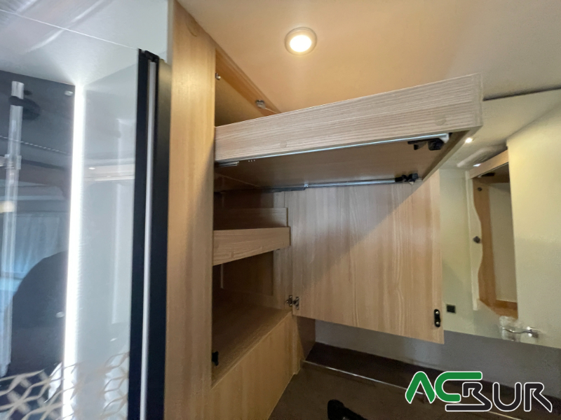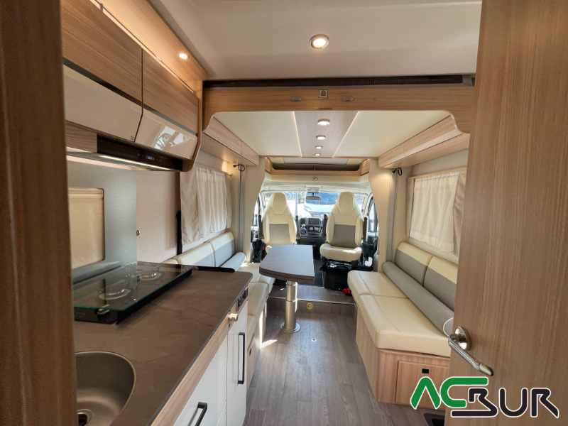 Autocaravana perfilada de gama alta con un amplio dormitorio, un salón face to face , una cocina con grandes cajones y un cuarto de baño con ducha separada para un movimiento fácil y funcional, gran garaje con capacidad para una moto  :
