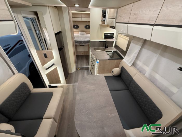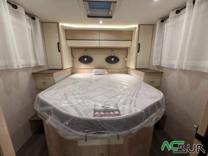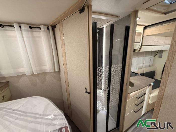 Autocaravana perfiladad de gama alta con un amplio dormitorio, un salón face to face , una cocina con grandes cajones y un cuarto de baño con ducha separada para un movimiento fácil y funcional, gran garaje con capacidad para una moto :