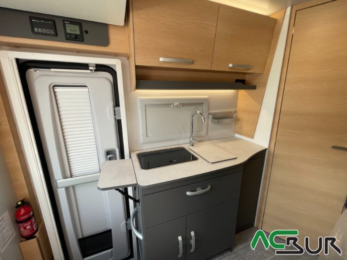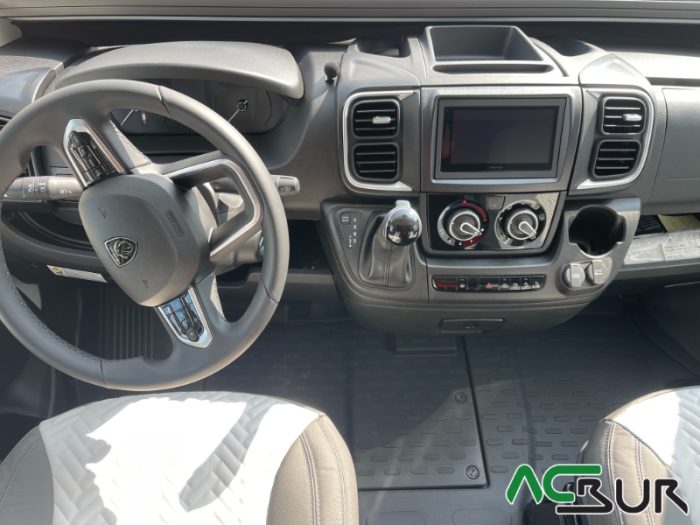 Autocaravana Perfilada  , compacta de tan solo 6 metros y capacidad para 4 personas con mucha amplitud, motor Fiat 140cv  EURO6 con cambio automatico , llantas de Aluminio, con todos las packs en la gama premier edition : maxi claraboya , retrocamra, puerta con 2 cierres y cierre centralizado, volante en cuero, pomo en cuero y faros antinieblas.Amplio salon con Smart TV 21 " y cocina en  con mucho almacenaje, cama trasera francesa con canape elevable para almacenaje y amplio salon con cama elevable.
