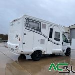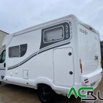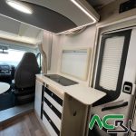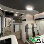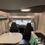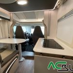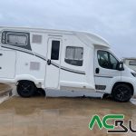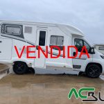 Autocaravana compacta ilusion 590, de 6 metros de longitud, con cam doble transversal, cama basculante electricamente en salon y amplio garaje