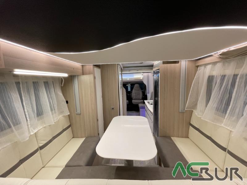 La autocaravana perfilada Ilusion 650PLUS H Premium es un vehículo semi-integral que se caracteriza por su amplio y práctico salón trasero en forma de U.