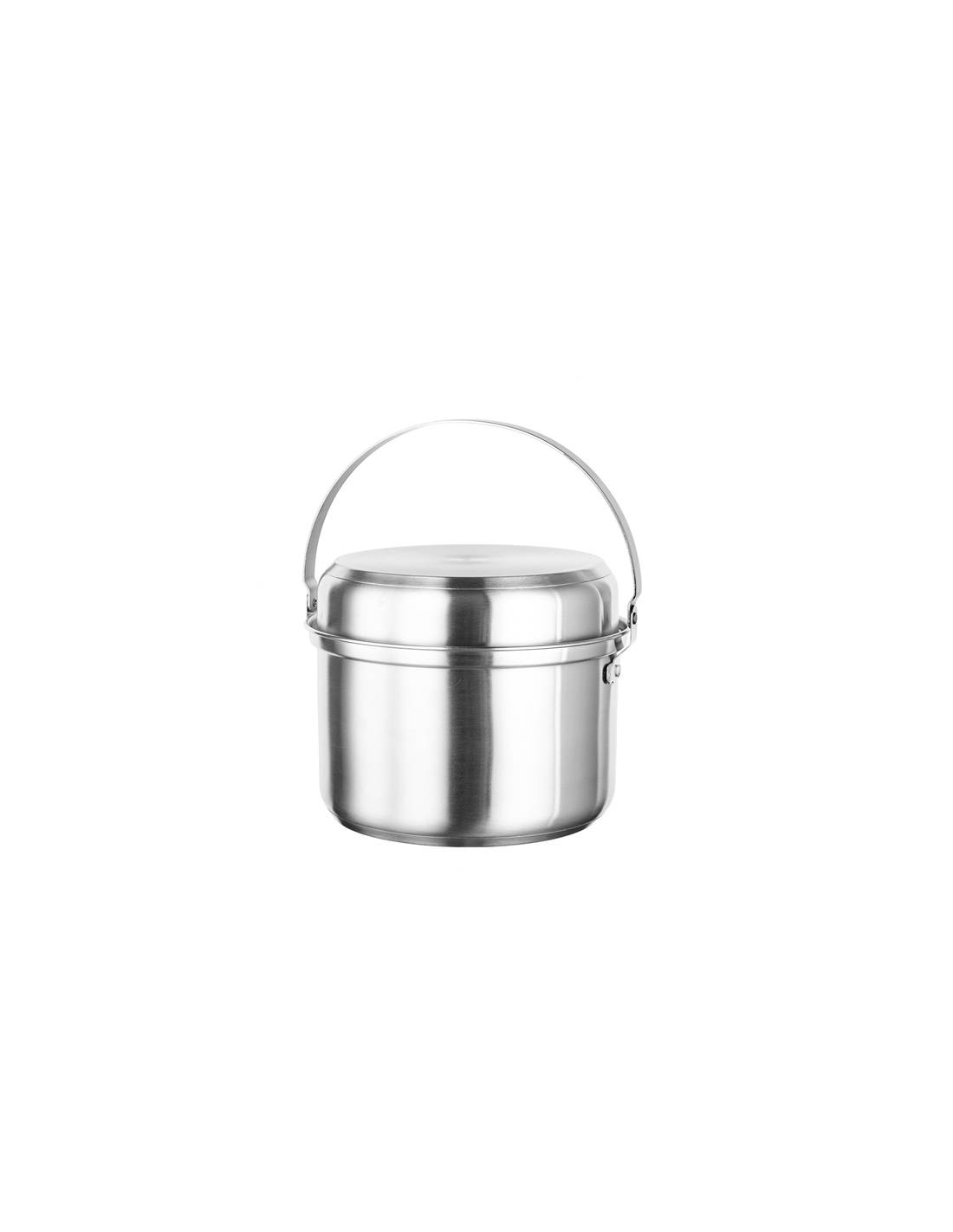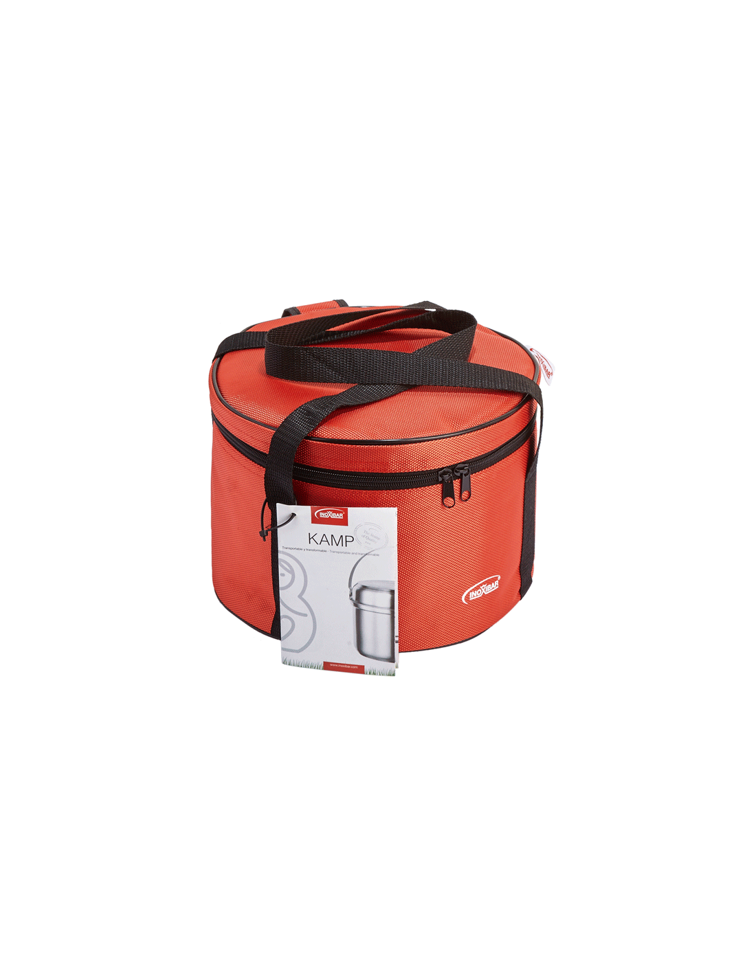 la Bateria de cocina camping inox kamp 7 piezas es perfecta  para el  camping, la autocaravana, caravana y camper su diseño funcional, plegable y portátil. Asas plegables  en olla y cazos. Sartén con mango desmontable. Todos apilables unos dentros de otros y pueden ser guardados en su bolsa. Fondo difusor apto para todos los fuegos, incluido inducción. Apto para el lavavajillas.