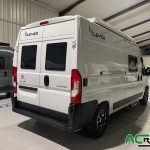 Camper 6 metros , con cama trasera transversal de 1,40 x 1.94 , 4 plazas viajar y 4 dormir gracias a su tehco elevable con cama de 1,30 x 2.00 metros, con sistema de multimedia , control de velocidad, aire acondicionado, sistema inteligente de traccion, motor Citroen 140cv EURO6, con llantas de Aluminio, con todos las packs:claraboya, . Pack Clever que incluye: volante en cuero, pomo en cuero y faros antinieblas.Amplio salon y cocina con amplia encimera con mucho almacenaje, y amplia capacidad de carga.