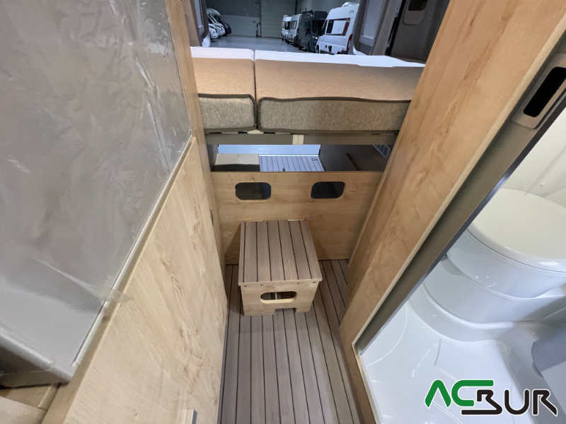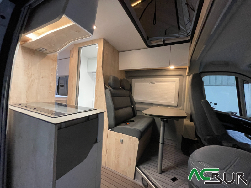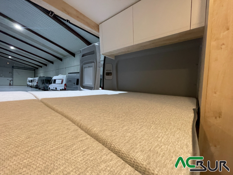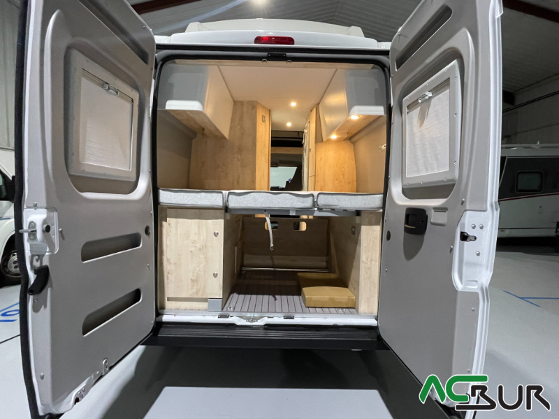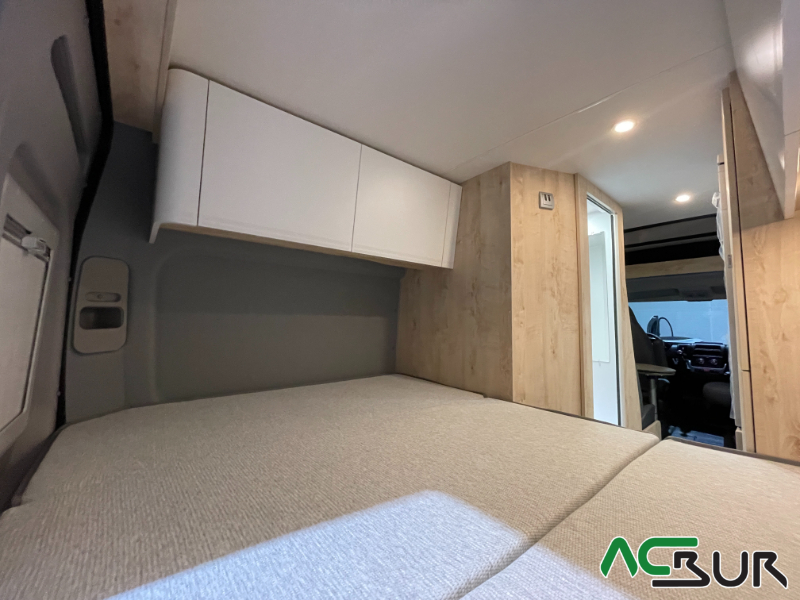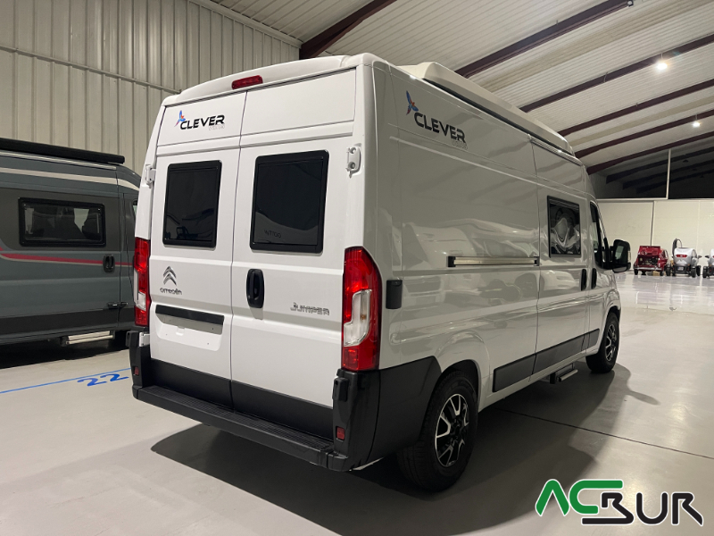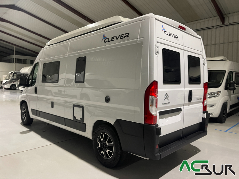 Camper 6 metros , con cama trasera transversal de 1,40 x 1.94 , 4 plazas viajar y 4 dormir gracias a su tehco elevable con cama de 1,30 x 2.00 metros, con sistema de multimedia , control de velocidad, aire acondicionado, sistema inteligente de traccion, motor Citroen 140cv EURO6, con llantas de Aluminio, con todos las packs:claraboya, . Pack Clever que incluye: volante en cuero, pomo en cuero y faros antinieblas.Amplio salon y cocina con amplia encimera con mucho almacenaje, y amplia capacidad de carga.
