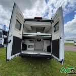 Opciones*: Techo elevable (manual o eléctrico), banco de asientos que se convierte en cama en dos segundos (1,80 x 0,90 m), paquete de invierno con calefacción por suelo radiante y plato de ducha calefactado, techo panorámico Skyview, módulo solar de 350 vatios para techo elevable.