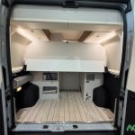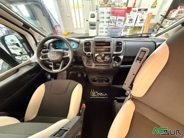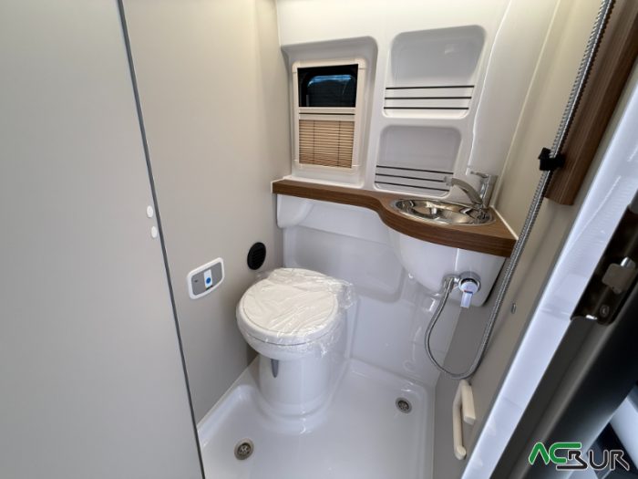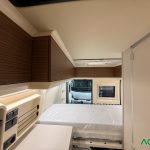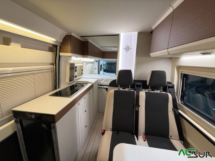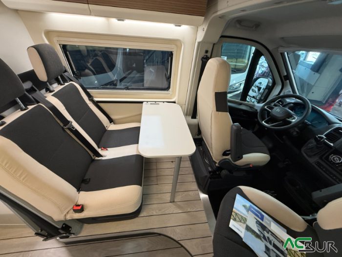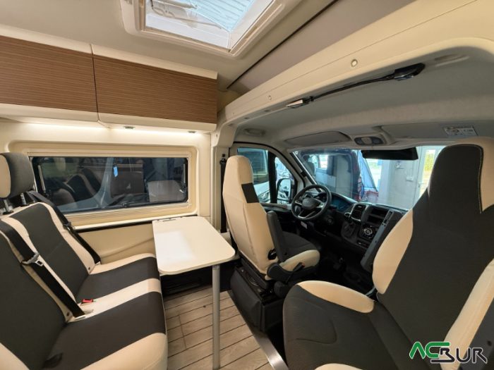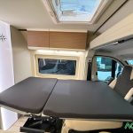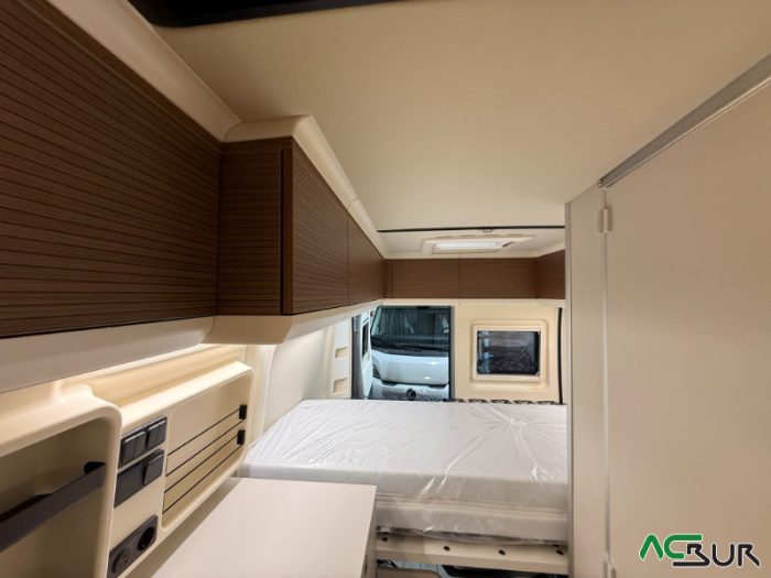 Opciones*: Techo retráctil (manual o eléctrico), banco cama plegable en dos segundos (1,80 x 0,90 m), pack de invierno con suelo radiante y plato de ducha calefactado, techo panorámico skyview, panel solar de 350 vatios para techo retráctil.