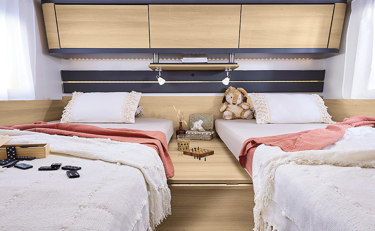 Numerosos compartimentos portaobjetos en la zona de las camas