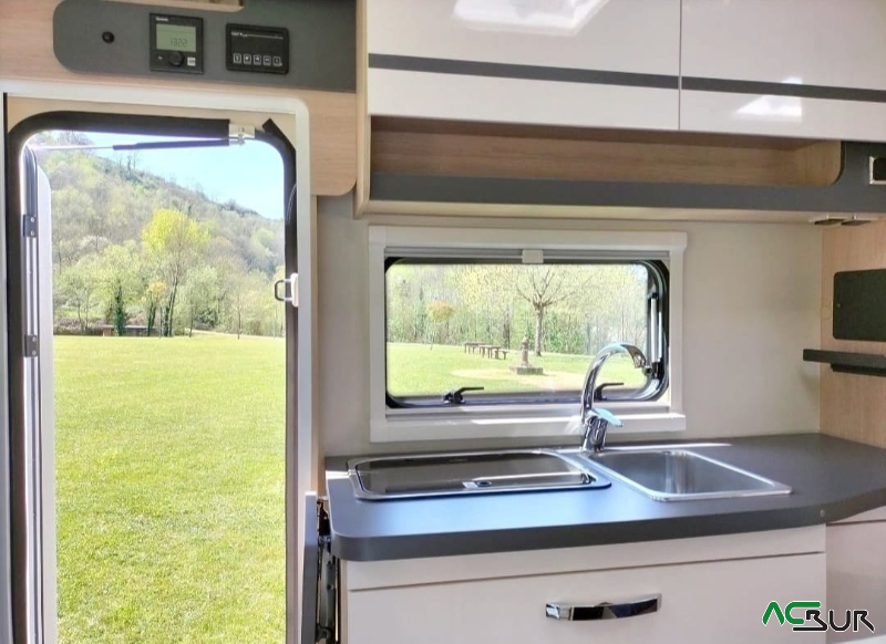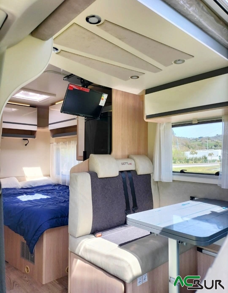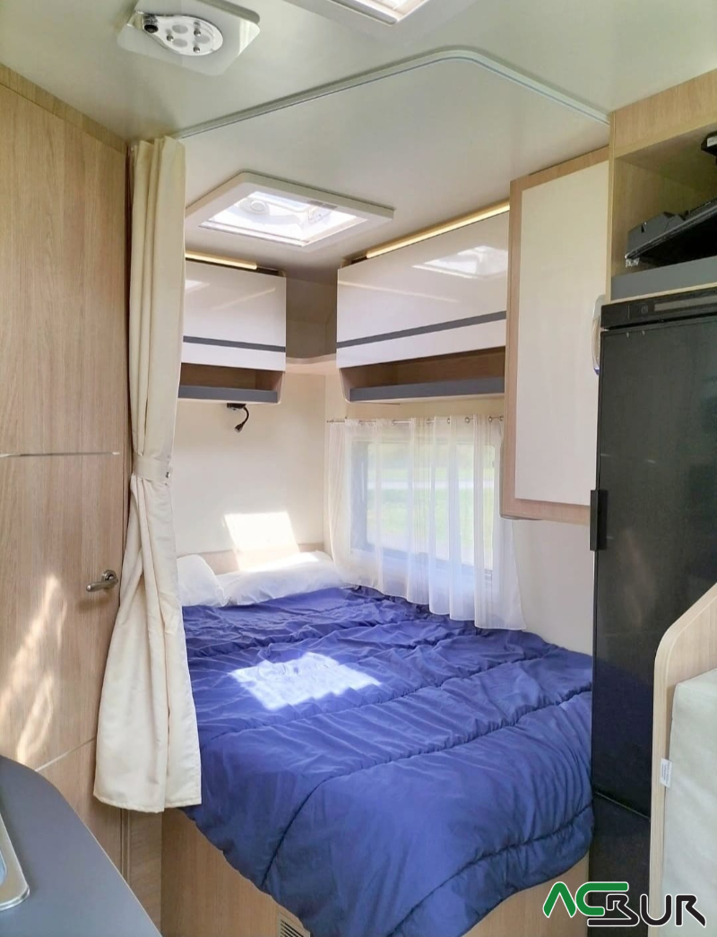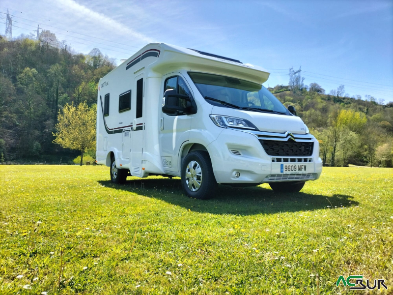 Autocaravana perfilada Siena 330 distribuccion con cama francesa trasera , baño con ducha amplia y mampara, camas traseras gemelas, cama electrica en salon, control de velocidad, aire acondicionado, sistema inteligente de traccion, motor Citroen 140cv EURO6, con llantas de Aluminio, pack privilege que incluye: retrocamara, puerta con 2 cierres y cierre centralizado, tapiceria privilege y trasera styl. Pack plus psa que incluye: sensor de luces y lluvia automaticos, volante en cuero, pomo en cuero y faros antinieblas.
