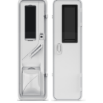 Puerta probada según normas, aprobada para autocaravanas. Marco y hoja de la puerta de aluminio, radios de las esquinas de 89 mm, para espesores de pared de 31-33 mm Y MEDIDAS1950x550 2x, bisagra de la puerta vista desde el exterior a la derecha. Ventana integrada E1. Cilindro de bloqueo HSC-II. Carcasa interior de ABS. Se puede conectar al cierre centralizado del vehiculo y a la alarma.